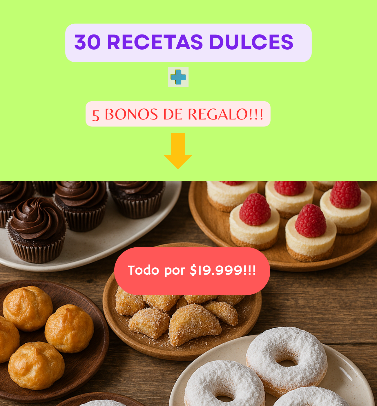 Cada receta fue diseñada con un enfoque claro: resultados profesionales, explicaciones simples y técnicas accesibles para que cualquier persona, tenga experiencia o no, pueda obtener postres de calidad y con presentaciones perfectas. Los ingredientes son fáciles de conseguir y las preparaciones están organizadas paso a paso, asegurando que cada creación sea un éxito.
